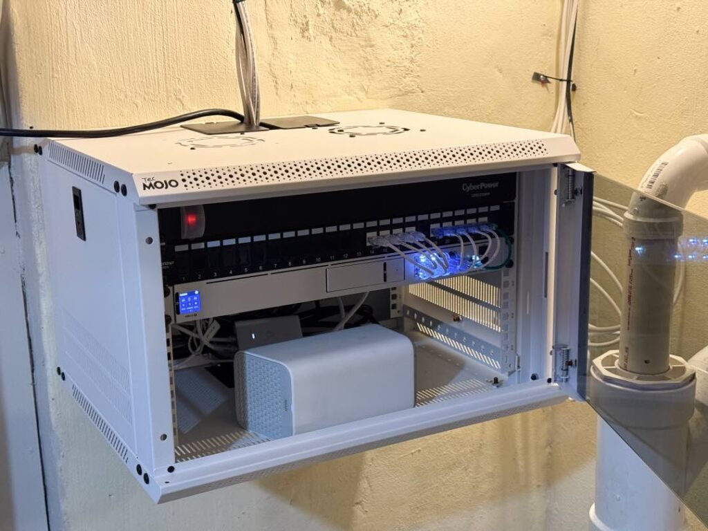 Comcast or AT&T Internet modem, WiFi Router and Switches are placed discreetly in a closet or utility room using an enclosed IT Rack. The rack not only keep devices and cables stay dust free but it also provides a very clean look so you don’t see a mess of cables.